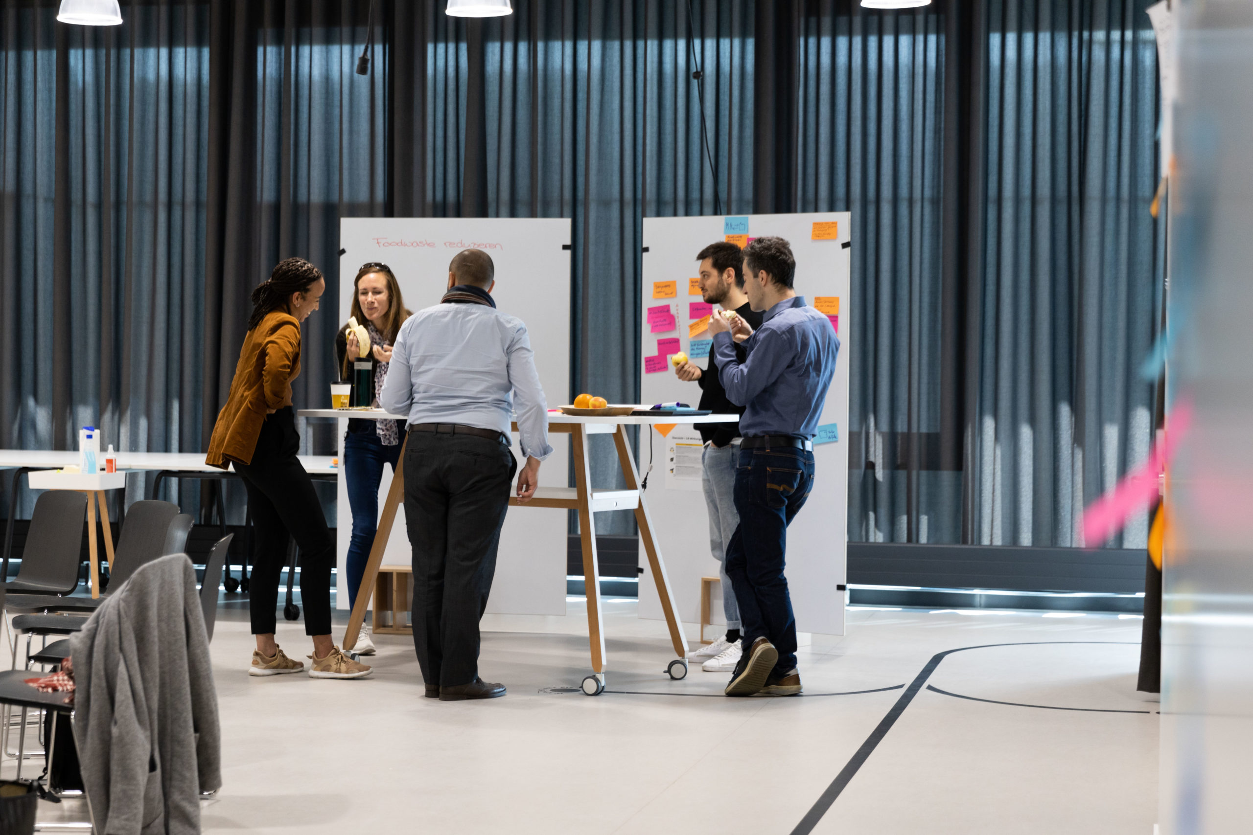 Nach wenigen Stunden kristallisierten sich die Projekte heraus. Die Gruppen stellten sich den Herausforderungen zu Themen wie Food Waste, Recycling, nachhaltige Finanzprodukte, soziales Engagement und Gender Data Gap. Und los gings mit der eigentlichen Arbeit.